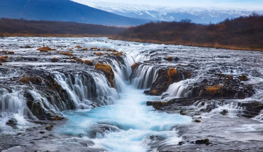 The blue color comes from glacial minerals in the water and the way light reflects off the streambed. It's most vibrant on bright, sunny days. Many photography tours and adventure tours in the Golden Circle area now include Bruarfoss for travelers who want to see something off the beaten path.